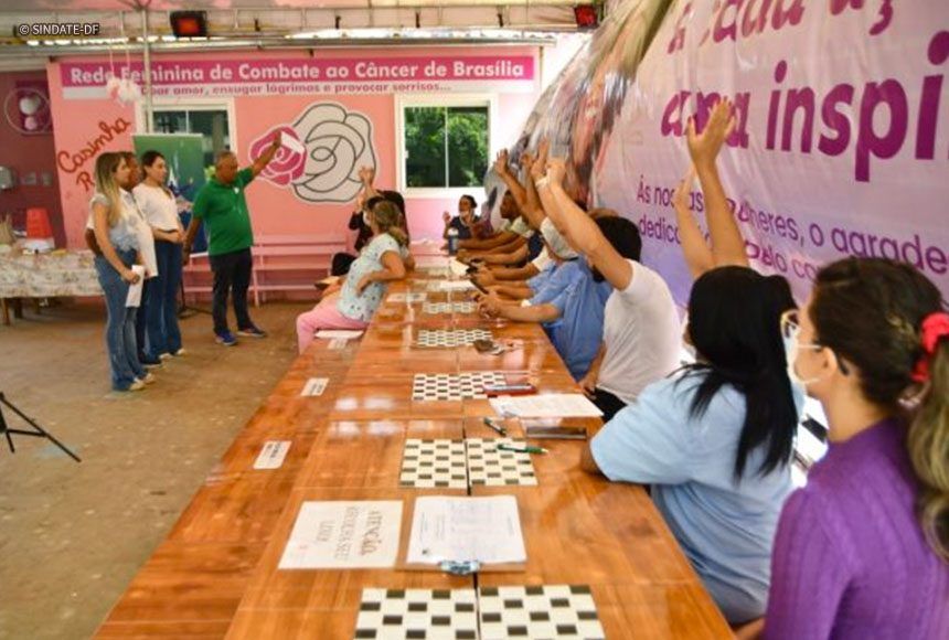 Nesta segunda-feira (21/11), a direção do Sindicato dos Auxiliares e Técnicos em Enfermagem do Distrito Federal (Sindate-DF) realizou uma assembleia com os profissionais do Instituto de Gestão Estratégica para tratar da contraproposta feita pelo IGES para o Acordo Coletivo de Trabalho.