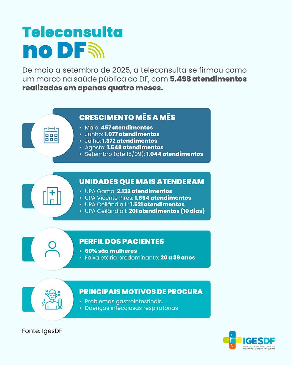 A expansão do serviço, que começou em maio na UPA de Vicente Pires e já alcança as unidades do Gama e Ceilândia I e II, segue um planejamento criterioso. “Estamos avançando com muita responsabilidade. Antes de expandir, avaliamos os resultados clínicos, a infraestrutura e o acolhimento da comunidade local. Queremos que a teleconsulta se torne um verdadeiro polo facilitador da jornada do paciente dentro do SUS”, avalia o diretor de Atenção à Saúde do IgesDF, Rodolfo Lira. A expectativa é que todas as 13 UPAs administradas pelo instituto ofereçam a modalidade até o final deste ano.