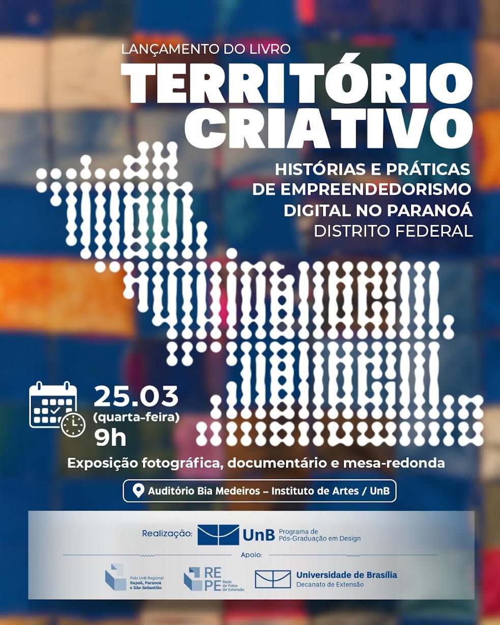 O Programa de Pós-Graduação em Design da Universidade de Brasília (PPG Design/UnB) realizará o lançamento do livro “Território criativo: histórias e práticas de empreendedorismo digital no Paranoá, Distrito Federal” na próxima quarta-feira (25/Mar), às 9h. O evento, que ocorrerá no Auditório Bia Medeiros do Instituto de Artes da UnB, tem como objetivo divulgar os resultados de um projeto de extensão que capacitou empreendedores da região administrativa do Paranoá e contará com exposição fotográfica, exibição de documentário e uma mesa-redonda.