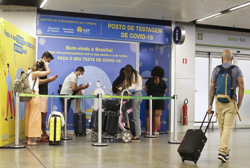 Com movimento de 285 mil passageiros somente entre 27 de dezembro e 2 de janeiro, o Aeroporto de Brasília também conta com um ponto de testagem para a covid-19. O local, estruturado em parceria com a Secretaria de Turismo, o Sesc e a Inframérica, fica próximo às esteiras de restituição de bagagem do desembarque nacional e funciona de segunda a sexta-feira, das 8h às 17h. Os resultados saem em até 30 minutos.