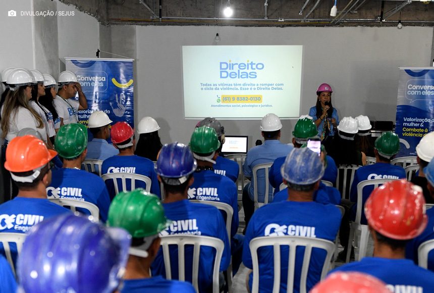 A Secretaria de Justiça e Cidadania (Sejus), em parceria com o Sindicato da Indústria da Construção Civil do Distrito Federal (Sinduscon-DF), lançou, na manhã desta sexta-feira (26), o projeto Conversa com Eles, no canteiro de obras do Hospital de Planaltina. O objetivo é dialogar com os trabalhadores para conscientizar sobre a necessidade de eliminação da violência doméstica, com ações de prevenção e combate à violência e orientação sobre a adequada solução de conflitos.
