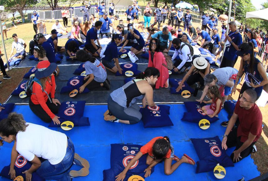 O Parque da Cidade foi palco, neste sábado (21), de uma ação que conscientiza sobre a manobra de reanimação cardiopulmonar (RCP), assim como do uso do desfibrilador externo automático (DEA). Promovido pelo Serviço de Atendimento Móvel de Urgência (Samu-DF), o objetivo do evento foi destacar a importância do procedimento na sobrevida de vítimas e aumentar a quantidade de pessoas treinadas em Suporte Básico de Vida (SBV).