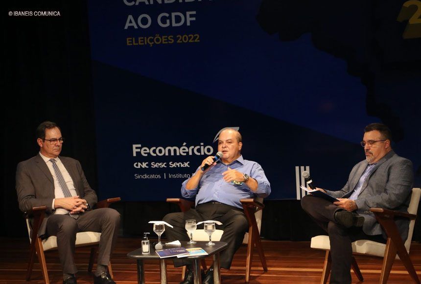 Um governo parceiro dos empresários e da população. Assim definiu o governador Ibaneis Rocha (MDB) ao falar de sua gestão na sabatina promovida pela Fecomércio nesta sexta-feira (16). Ibaneis se comprometeu a continuar reduzindo impostos em um segundo mandato e atrair mais empresas para o Distrito Federal.