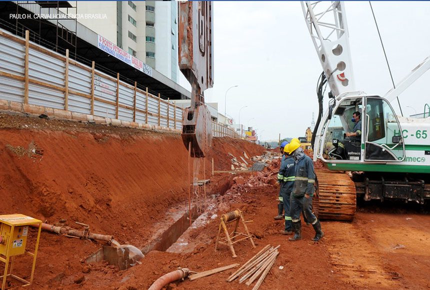 Também são utilizados seis guindastes modernos para o processo de escavação, que atinge de sete a 20 metros de profundidade. Ágeis, os equipamentos têm 22 metros de altura, enquanto os mais antigos – da década de 1990 – têm 18 metros. “Não é normal para a realidade das obras de Brasília ter esse tipo de tecnologia”, valoriza Luciano Carvalho. “Estamos usando as ferramentas adequadas para uma obra desse porte”.