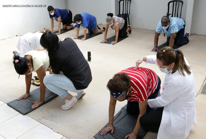 “Geralmente, os pacientes que chegam com queixas de dor são encaminhados para o grupo. Primeiro passam por uma avaliação com a nossa equipe de Saúde da Família, para verificar se podem ir para a atividade em grupo ou se precisam de atendimento individual”, detalha Diego.