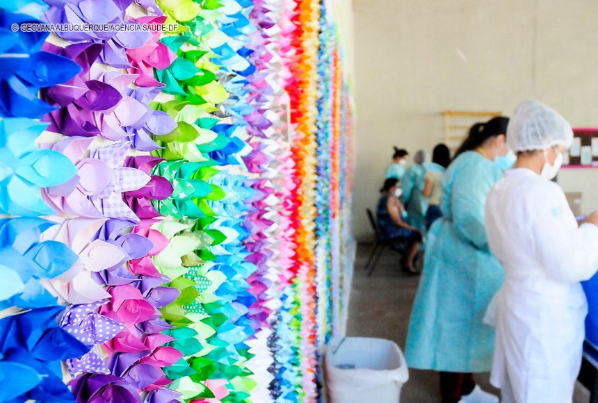 Há exatamente um ano, ocorria o primeiro óbito por covid-19 no Distrito Federal. Como forma de homenagear as vítimas e levar esperança àqueles que estão se vacinando, foi montado um painel com flores de lótus, feitas de papel, na Unidade Básica de Saúde 7 de Ceilândia. O mural trouxe leveza e reflexão ao ambiente da unidade, que também oferece a vacina que previne a doença. A UBS foi escolhida por possuir um espaço amplo ideal para a montagem do painel.