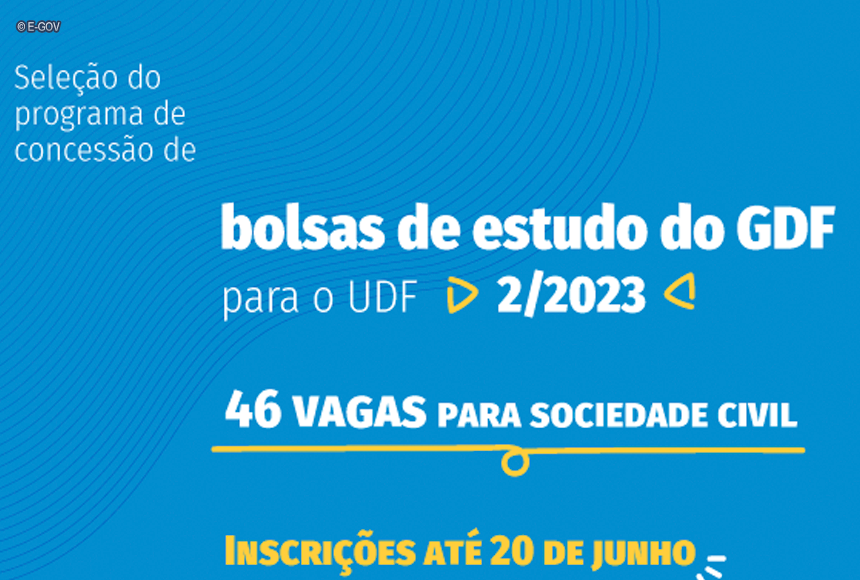 O Governo do Distrito Federal (GDF) está com inscrições abertas para o tradicional concurso para seleção do Programa de Concessão de Bolsas de Estudos, ofertado semestralmente para as vagas abertas no Centro de Ensino Unificado do DF (UDF). Ao todo, são oferecidas 46 vagas destinadas a alunos egressos da rede pública de ensino do DF.
