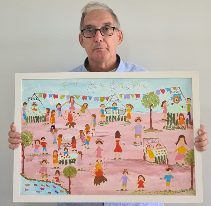 Depois de dois meses, o paciente recebeu alta. Mas a história do menino continuou na vida de Julival, em forma de arte. Isso porque, por coincidência do destino, um quadro pintado pelo garoto chegou às mãos do médico. “Um belo dia, teve uma exposição na área administrativa do HB, organizada pelo pessoal da Pediatria. Nesse dia, eu virei para a professora de arte e pedi um quadro que tivesse felicidade e alegria. Ela me entregou justamente a obra pintada pela criança que eu tinha atendido”, ri, Julival. “Eu comprei e tenho até hoje na minha casa. É uma imagem de vida, de esperança. Nem por um milhão de dólares eu vendo esse quadro.”