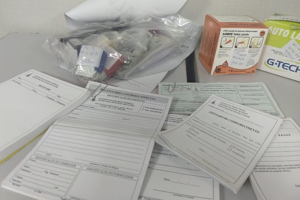 Porém, ao encontrarem materiais, com timbre da SES-DF, na casa, a operação trabalha, também, com a possibilidade de comercialização de receituários, atestados médicos e de comparecimento. O material tinha o timbre da Secretaria de Saúde. O que pode incluir falsidade ideológica e falsificação de documento público e, até mesmo, associação criminosa.