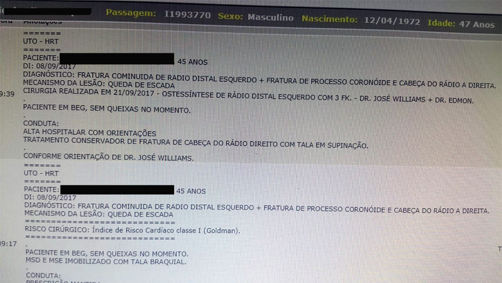 Porém, de acordo com os denunciantes, na data marcada, houve o cancelamento da cirurgia. Ocasião em que um médico da ortopedia tomou conhecimento da suposta ‘venda’, por parte de Ruby, pois o paciente reclamou ter pagado pelo procedimento.