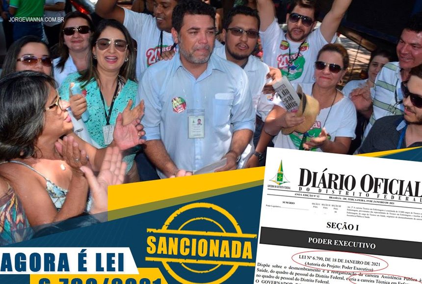 Na manhã desta terça-feira (19/01), o Governador Ibaneis Rocha (MDB) sancionou a Lei Nº 6.790/2021, Lei que trata da criação do Plano de Carreira dos Auxiliares e Técnicos em Enfermagem. A criação dessa Lei era um sonho de toda a categoria e foi promessa de campanha do deputado Jorge Vianna (Podemos), que também é da enfermagem e fez o pedido ao governador para que fizesse a criação carreira.