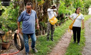 Além de orientações, os profissionais também aplicaram um larvicida biológico em pontos estratégicos. Esse produto impede que as larvas do mosquito se desenvolvam e se tornem transmissores da dengue. Quando não é possível eliminar certos depósitos com água, essa é uma medida eficaz para o controle da proliferação. “O larvicida pode agir de um a três meses a depender do local, mas a melhor forma de prevenção sempre será eliminar os depósitos”, explicou o Ava Elvis Oliveira.