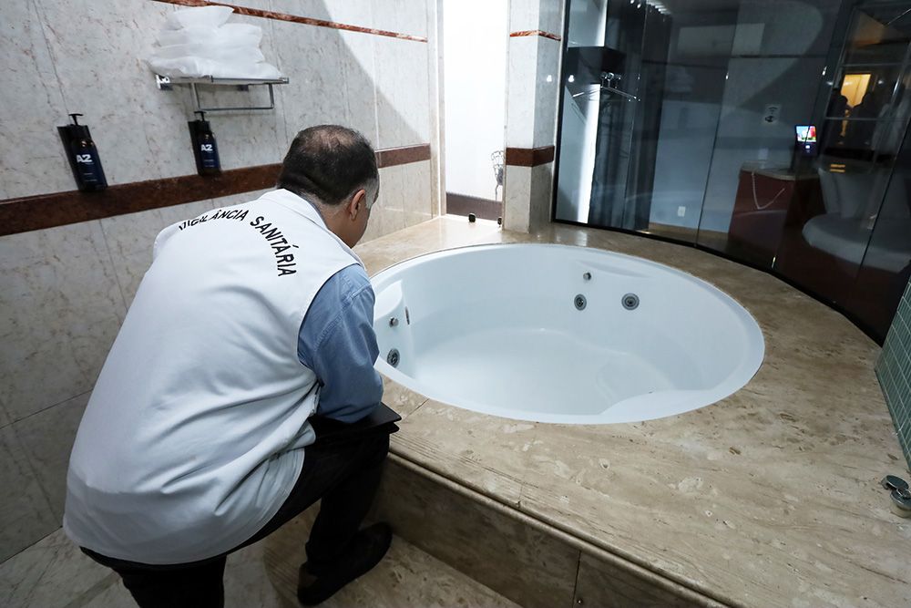 Nesta terça-feira (10), a equipe da Vigilância esteve em um motel do DF para avaliar a limpeza de banheiras, mobiliário, lavanderia, serviços de alimentação e a qualidade da água utilizada, especialmente quando não proveniente da rede pública. Durante a vistoria, os auditores também avaliaram os procedimentos operacionais adotados a cada troca de usuários.
