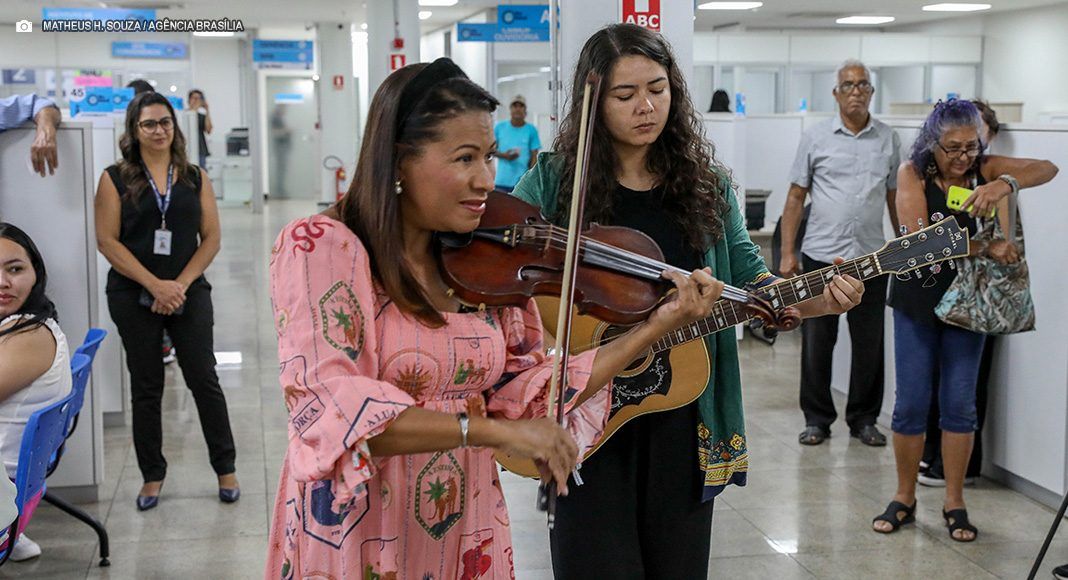 O atendimento no Na Hora da Rodoviária do Plano Piloto teve uma trilha sonora especial nesta quarta-feira (12). Com uma apresentação musical, a violonista Kathia Pinheiro retornou à unidade para retribuir a presteza e a gentileza que recebeu da equipe durante atendimento no mês passado. “Eu estava tentando resolver um problema há três meses e, em apenas 15 minutos, eles encontraram a solução. Fiquei muito emocionada e feliz”, conta Kathia.