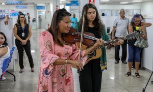 A artista escolheu o mês de março para também contemplar o público feminino, com uma apresentação em duo (violão e violino). “Pensamos em vir neste período para também homenagear as mulheres no mês delas”, explica a musicista, que acredita no poder transformador da música. “Muitas pessoas chegam aqui preocupadas, e uma melodia pode acalmar e trazer um pouco de leveza”, reflete.
