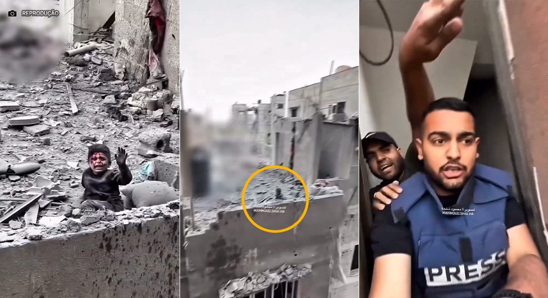 A chama atenção, uma vez que a equipe de reportagem que captou as imagens estava, em uma janela ao que tudo indica em um vão de escadaria de um prédio vizinho, e a criança, na cobertura do prédio vizinho, ao que se pode observar de no mínimo três andares e totalmente destruído.