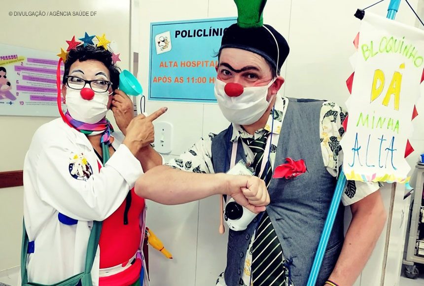 A dupla de palhaços Fernanda Vinci e Joaquim Olimpio forma o Plantão de Palhaços. Eles interagem com crianças e adultos com o objetivo de criar laços de amizade e cumplicidade com os pacientes, seus parentes e profissionais da saúde. “A intervenção da palhaçaria hospitalar busca despertar a alegria, levando diversão e descontração nas recepções, salas de espera, corredores, ambulatórios, enfermaria e demais setores do Hmib”, conta Fernanda.
