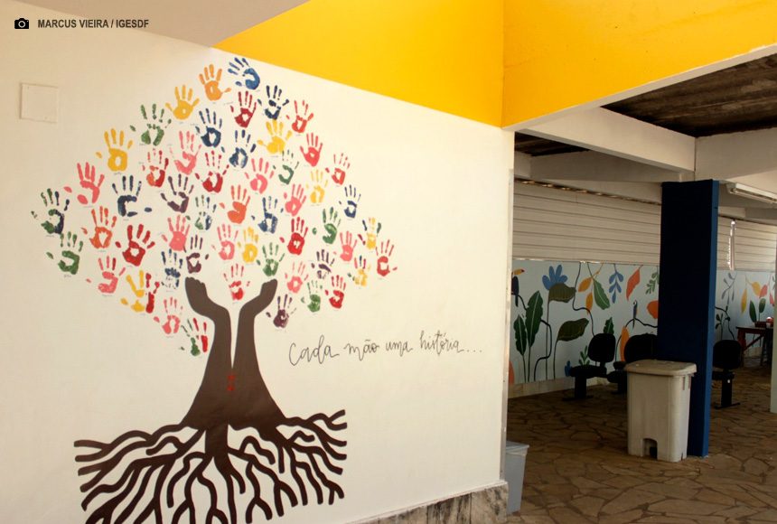 “Eu queria uma arte que simbolizasse a integração de todos. Muitos internos se sentem isolados, seja fisicamente, por preconceito da sociedade ou até mesmo por parte de familiares. Pensamos na necessidade dessa integração, e o terapeuta ocupacional do HBDF, Ronay de Lucena, trouxe a ideia perfeita”, conta Vandelicia.